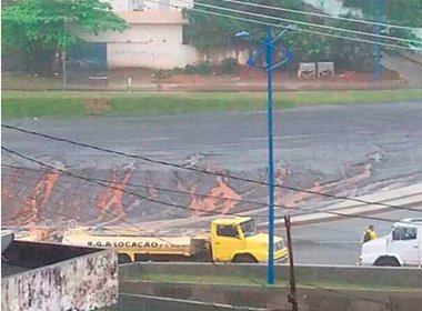 Uma parte da pista da Via Expressa Baía de Todos-os-Santos, que custou R$ 480 milhões e ainda não foi inaugurada, cedeu na manhã desta quinta-feira (10). A obra, em fase de conclusão, não resistiu à forte chuva* que teve início na noite desta quarta-feira (8) e que ainda castiga a capital baiana no início da manhã desta quinta (9). A construção da Via Expressa, de responsabilidade da Companhia de Desenvolvimento Urbano do Estado da Bahia (Conder), órgão vinculado à Secretaria Estadual de Desenvolvimento Urbano (Sedur), tem 4,3 quilômetros de extensão e vai da BR-324 até o Comércio, passando pela Rótula do Abacaxi, Barros Reis e por novos túneis, até a Cidade Baixa na altura do Porto. Nesta terça, a Conder finalizou os trabalhos de paisagismo e limpeza da via, que seria inaugurada nos próximos dias. Também na manhã desta quinta, segundo o Correio, uma carreta carregada de ferro afundou na pista do bairro do Uruguai, sentido Caminho de Areia, próximo ao Maxxi Atacado. De acordo com a Superintendência de Trânsito e Transportes (Transalvador), o fluxo de veículos está congestionado em toda a região de no Largo dos Mares. A Defesa Civil de Salvador (Codesal) já registrou, desde a 0h desta quinta, 16 solicitações. Uma casa desabou em Nova Brasília, no bairro de Itapuã. Ainda não há informações sobre as circunstâncias do incidente. Além disso, o órgão registrou diversos alagamentos por toda a cidade. Em sua conta no Twitter, a Codesal alerta e pede a atenção ao nível de rios e córregos.