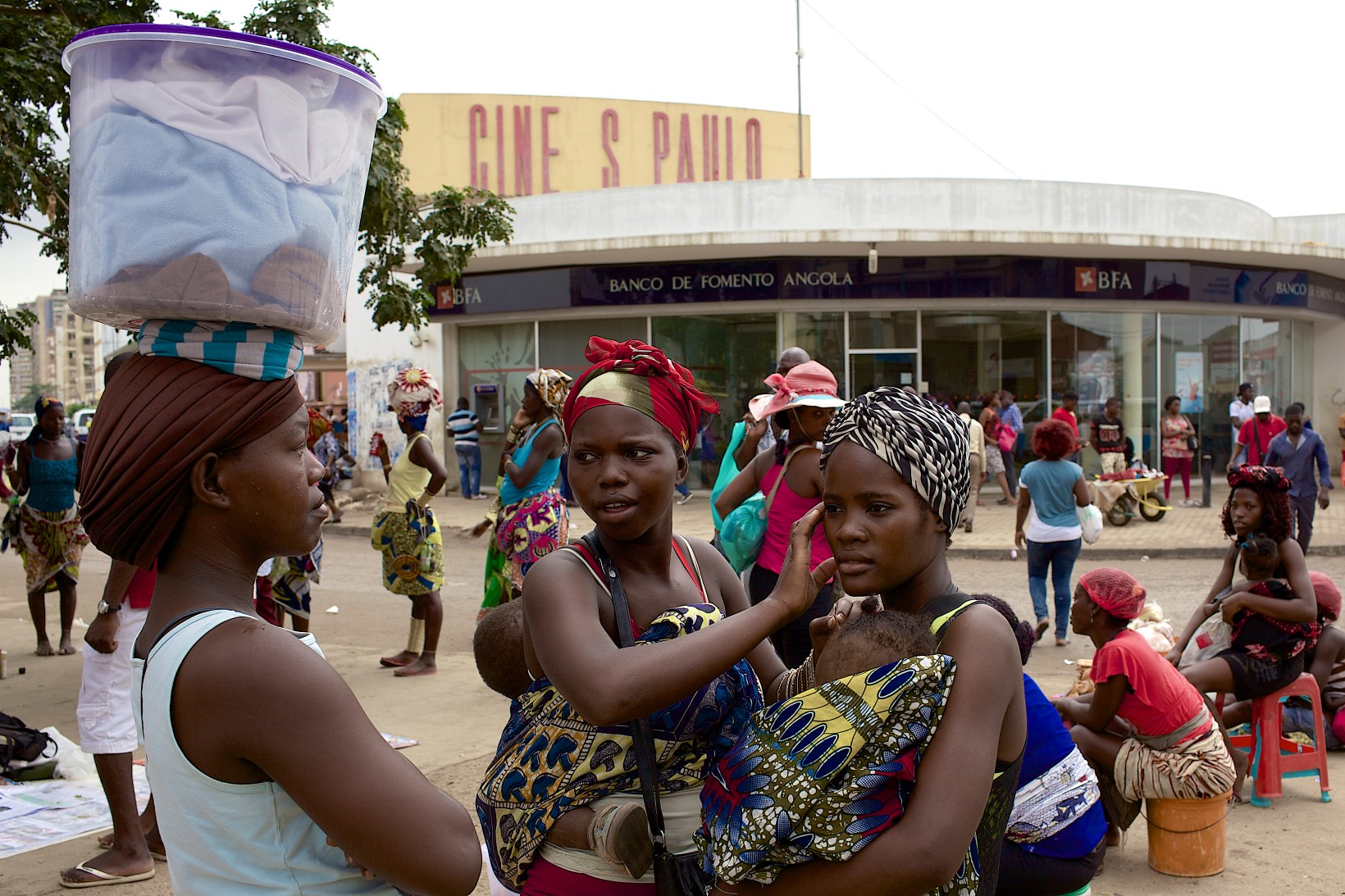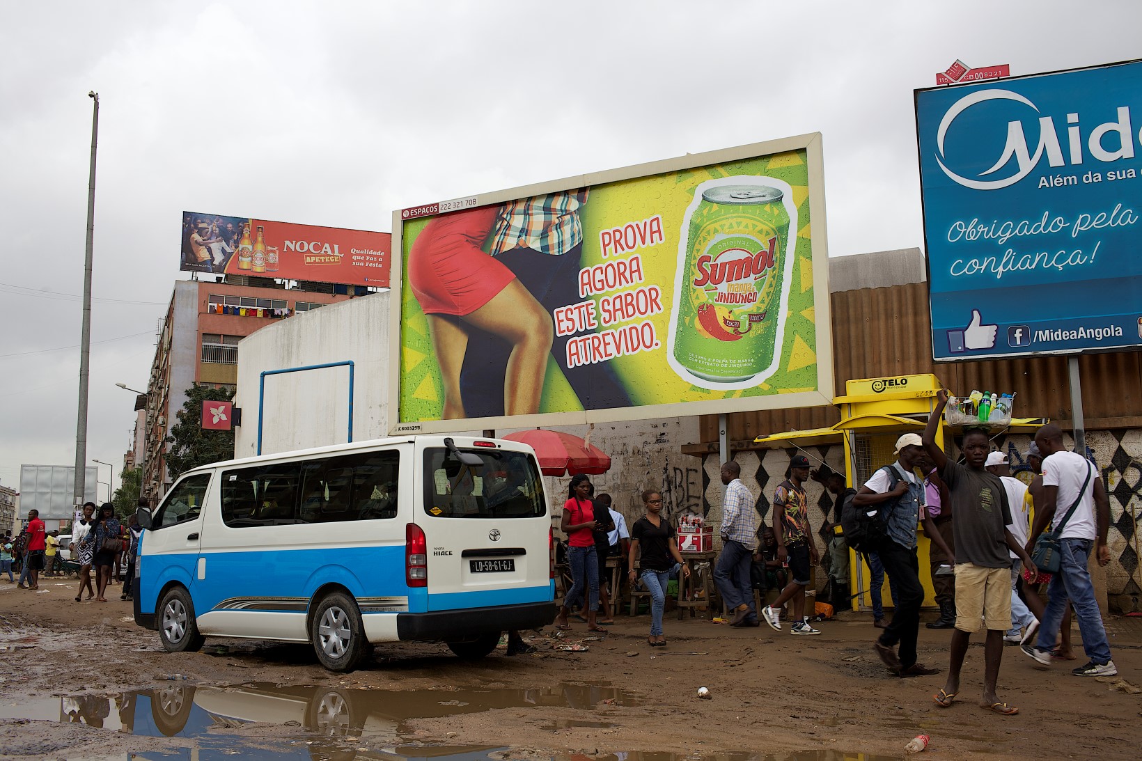 As chuvas de Março alagaram a cidade e tornaram o cheiro do lixo mais intenso. A recolha não se tem feito porque as empresas responsáveis não recebem do Governo Provincial de Luanda por “falta de liquidez” — queixam-se ainda que o mau estado das estradas não lhes permite chegar a determinadas zonas. Andar em pleno centro de Luanda num carro normal pode, de facto, ser uma aventura — além de o tráfego ser intenso, fazendo com que uma distância de um quilómetro demore facilmente meia hora a percorrer, as estradas estão muitas vezes com buracos enormes. Entre o pára-arranca vêm os vendedores às janelas dos carros com tudo o que se possa imaginar: cajus, fruta, cartões de carregamento de telemóveis, headphones a imitar marcas conhecidas, sacos de água, até chuveiros e outros produtos improváveis como tampos de sanita. É também na rua que se consegue o melhor câmbio para o dólar — conseguimos por 140 kwanzas, quando no banco variava à volta dos 110.